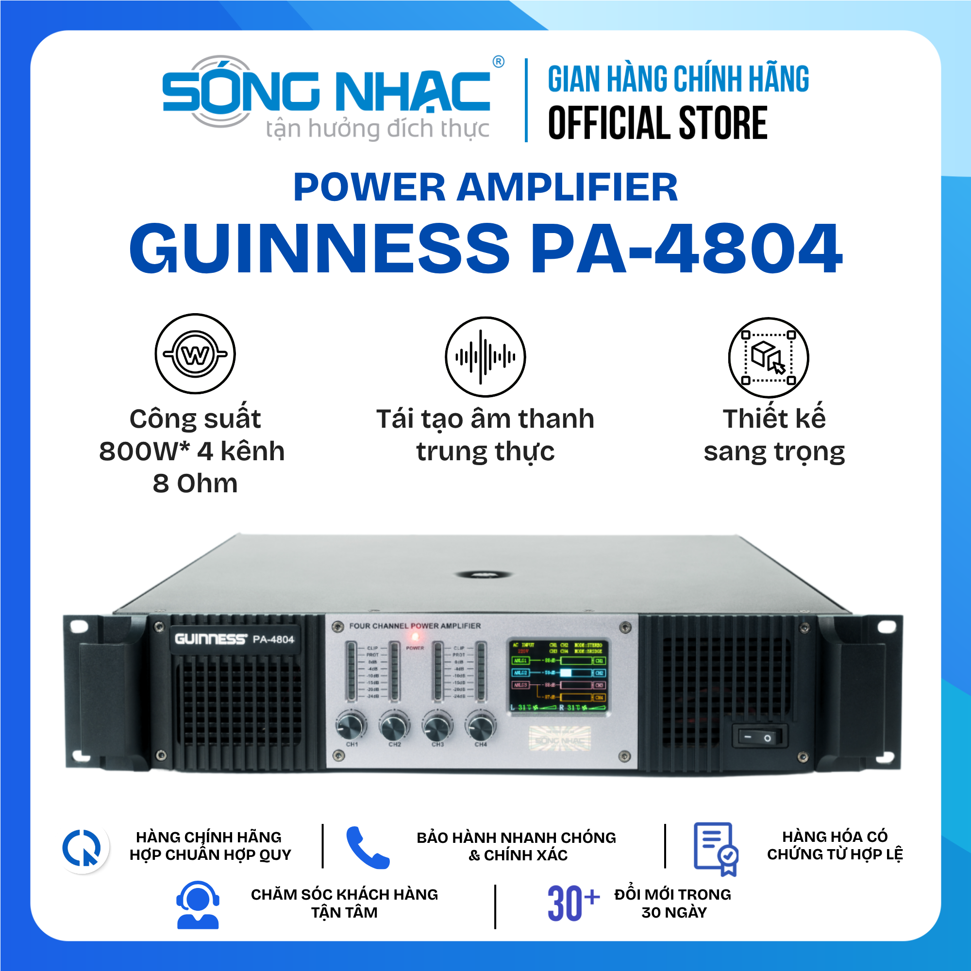 Một ưu điểm nổi bật khác của Power GUINNESS PA-4804 là độ méo tiếng chỉ ≤0.1%. Tỉ lệ méo tiếng cực nhỏ này đảm bảo chất lượng âm thanh khi qua cục đẩy vẫn trung thực, trong trẻo và rõ ràng. Với những tính năng nổi trội kể trên, Power GUINNESS PA-4804 xứng đáng là một trong những power amplifier gia đình được yêu thích nhất hiện nay. Để sở hữu sản phẩm đẳng cấp này, hãy liên hệ ngay với Sóng Nhạc qua Hotline: 1900 63 63 18 để được tư vấn chi tiết và tận tình.