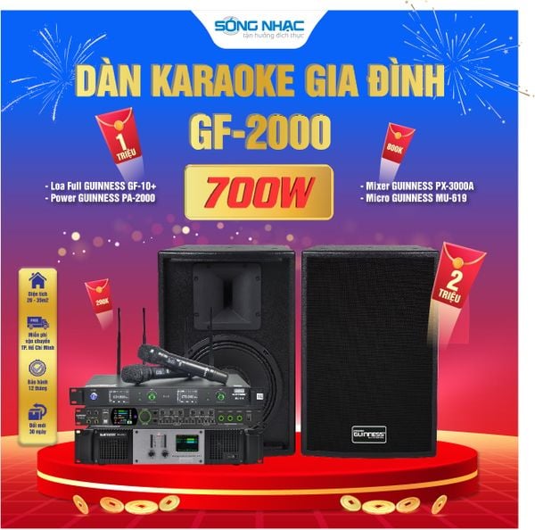 Dàn Karaoke Gia Đình GF - 2000 với các thiết bị GUINNESS là sự lựa chọn hoàn hảo cho những ai yêu thích ca hát và mong muốn có một không gian giải trí chuyên nghiệp ngay tại nhà. Với chất lượng âm thanh đỉnh cao, thiết kế hiện đại và khả năng phối ghép linh hoạt, bộ dàn này chắc chắn sẽ mang đến những phút giây thư giãn tuyệt vời cho gia đình bạn. Hãy liên hệ ngay Hotline 1900 63 63 18 để được tư vấn chi tiết và sở hữu dàn karaoke chất lượng cao với mức giá tốt nhất!